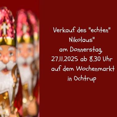 Der "echte Nikolaus" in Form des Bischofs von Myra wird auch in diesem Jahr wieder in seiner Schokoladenvariante von uns auf dem Wochenmarkt verkauft.…