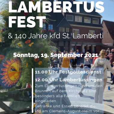 Das diesjährige Lambertusfest feiern wir am Sonntag, 19. Sept., gemeinsam mit der kfd St. Lamberti - sie feiert ihr Jubiläum zum 140-jährigen…