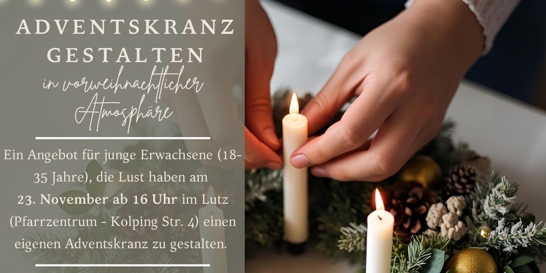 Am 23. November kann im Lutz in guter Atmosphäre der eigene Adventskranz gestaltet werden. Alle jungen Erwachsenen sind herzlich eingeladen!