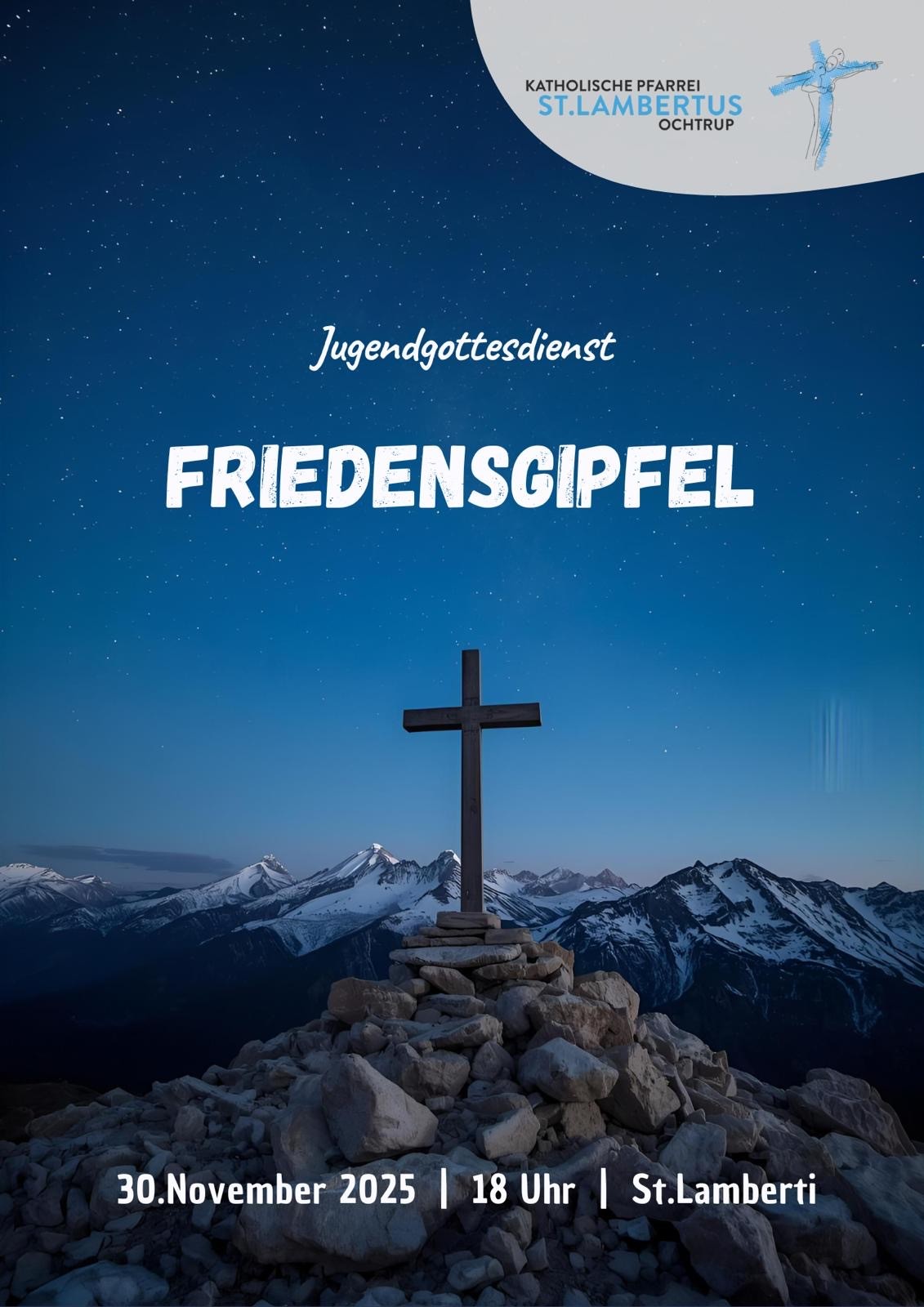 Das Motto lautet "Friedensgipfel" und nimmt die Sehnsucht des Propheten Jesaja nach einer Zeit auf, in der die Menschen in Frieden und Verständigung zusammenstehen. Diese Sehnsucht ist heute noch genauso aktuell. Von ihr wollen wir diesen Gottesdienst und den Advent prägen lassen.