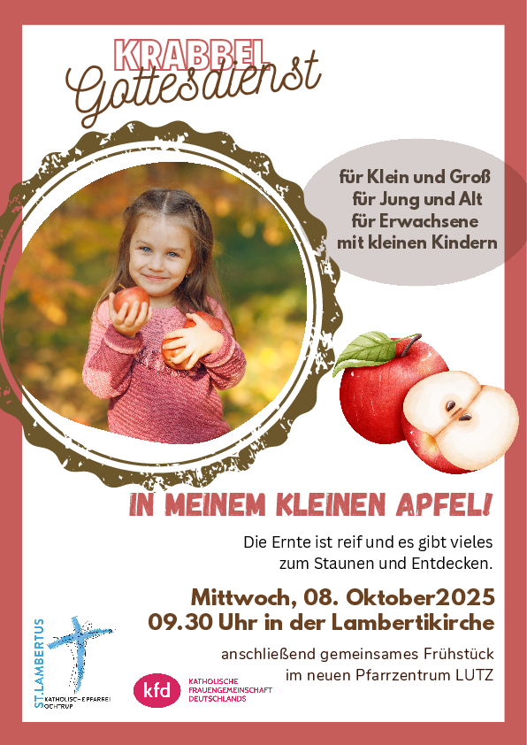 Mittwoch, 08. Oktober 2025 , 09.30 Uhr in der Lambertikirche, anschließend gemeinsames Frühstück im neuen Pfarrzentrum LUTZ