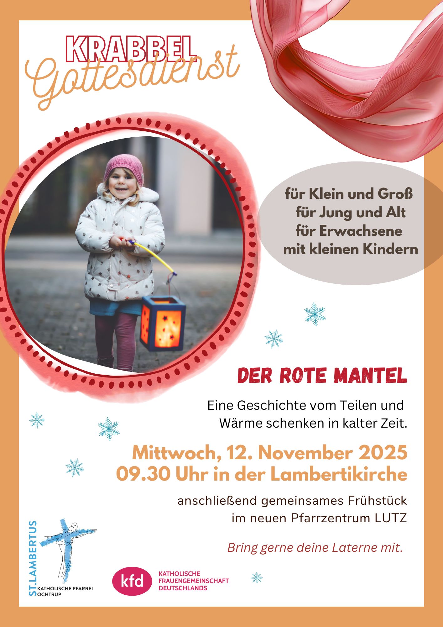 Mittwoch, 12. November 2025 , 09.30 Uhr in der Lambertikirche, anschließend gemeinsames Frühstück im Pfarrzentrum LUTZ