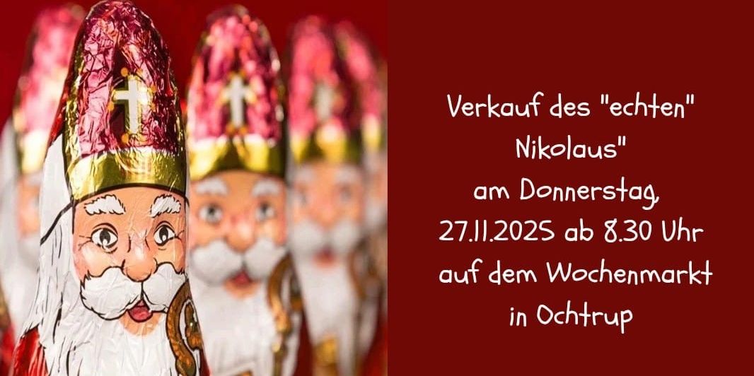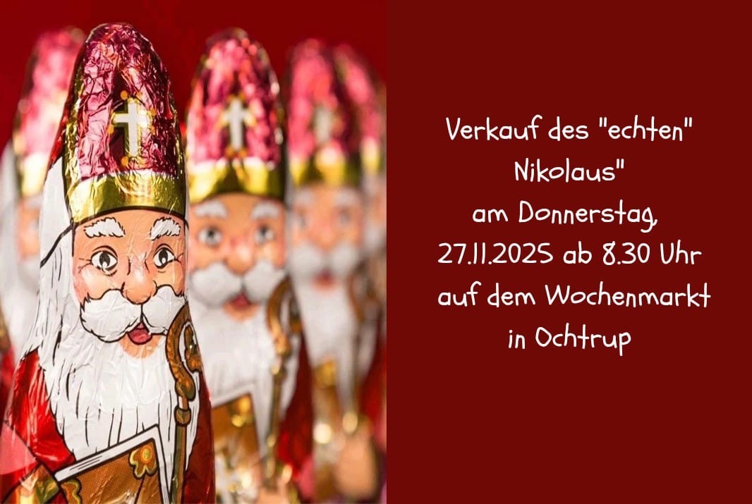 Am Donnerstag, 27. November, von 8.30 bis 11.00 Uhr kann der echte Nikolaus auf dem Wochenmarkt erworben werden.