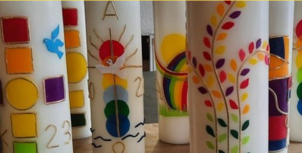 Die eigene Osterkerze kann am Gründonnerstag, 2. April, von 15.00-18.00 Uhr im Pfarrzentrum Lutz gestaltet werden. Kerze und Wachs können ab 3 Euro erworben werden, mitzubringen sind ein kleines Messer, evtl. Lineal. Einfach vorbeikommen!