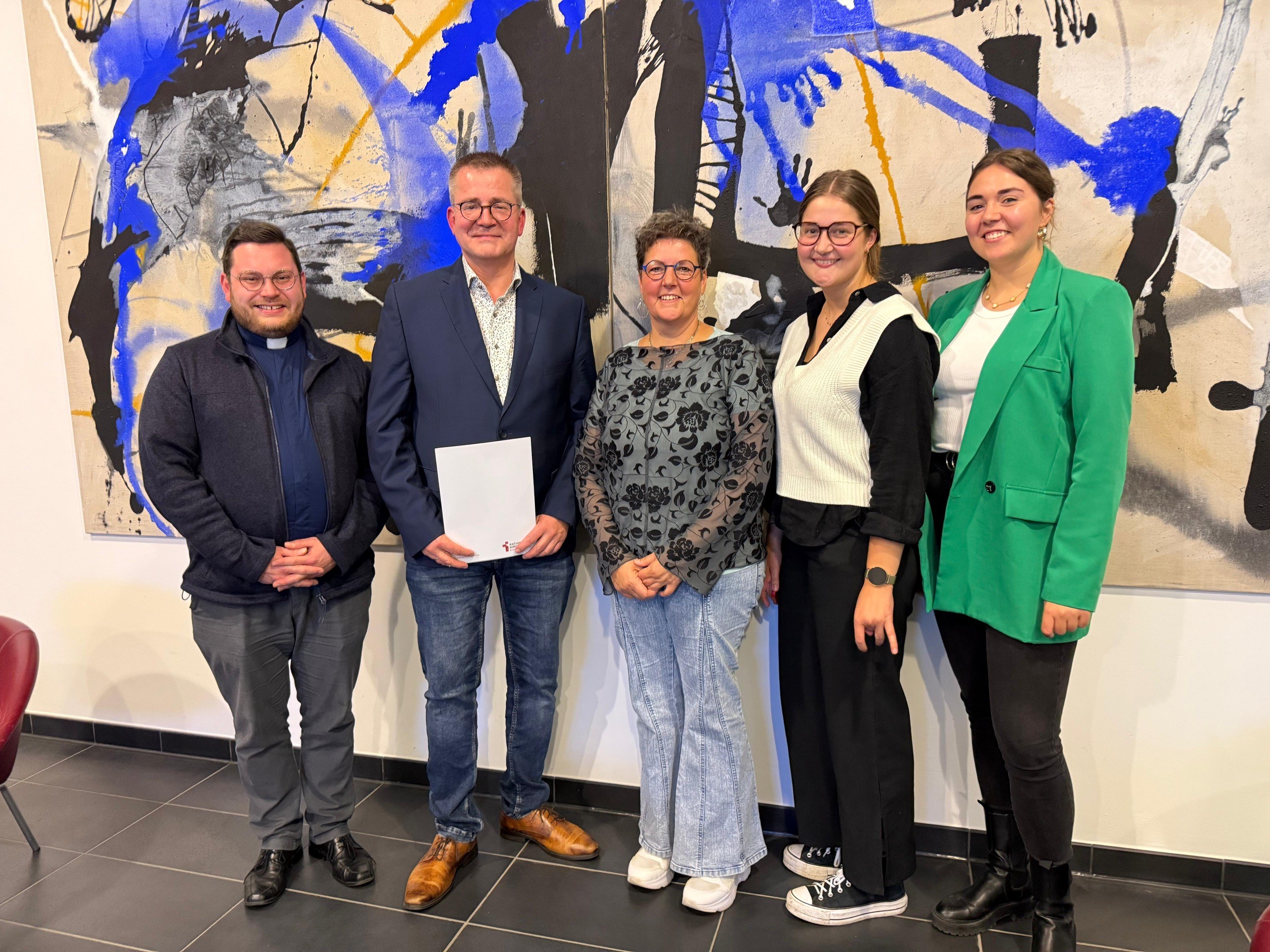 Zur Zertifikatsübergabe begleiteten ihn seine Ehefrau, seine beiden Töchter und Kaplan Rother.