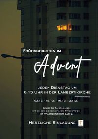 Beginnen Sie jeden Dienstag im Advent ganz besonders! Um 6.15 Uhr beginnt die Frühschicht in der Lambertikirche.