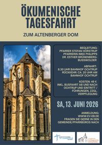Gemeinsam machen wir uns am Samstag, 13. Juni, auf den Weg zum Altenberger Dom im Bergischen Land. Uns erwartet ein Ort gelebter Ökumene sowie ein kulturell und landschaftlich besondere Umgebung.
