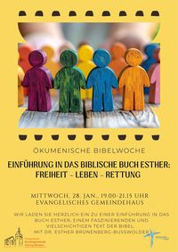Einführung in das biblische Buch Esther: Freiheit – Leben – Rettung in bedrohter Zeit am Mittwoch, 28. Januar, um 19.00 Uhr im Evangelischen Gemeindehaus, Ochtrup.