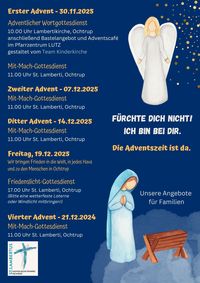 Publicandum vom 30.11. 2025 1. Advent In dieser Woche ist/sind verstorben: Andreas Rade Herr, gib allen Verstorbenen das ewige Leben.A: und das ewige Licht leuchte ihnen. Herr, lass sie leben in…
