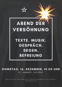 Am Dienstag, 16. Dezember, um 19.00 Uhr laden wir zum Abend der Versöhnung in die Lambertikirche ein.