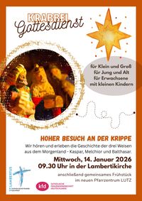 Hoher Besuch an der Krippe! Wir hören und erleben die Geschichte der drei Weisen aus dem Morgenland - Kaspar, Melchior und Balthasar.