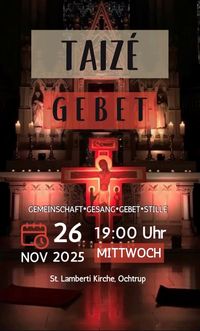 Taizé in Ochtrup! Am Mittwoch, 26. Nov., feiern wir um 19.00 Uhr in St. Lamberti ein Taizé-Gebet bei Kerzenschein, mit Stille und natürlich den berührenden Taizé-Liedern.