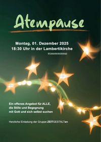 Wir laden herzlich zur nächsten Atempause am Montag, 1. Dezember, in St. Lamberti ein.